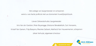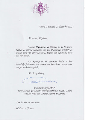 Gelukwensen van zowel de Koning als de Koningin. Niet vergeten dat ook het gemeentebestuur van Sint-Niklaas ons gelukwensen heeft gestuurd.