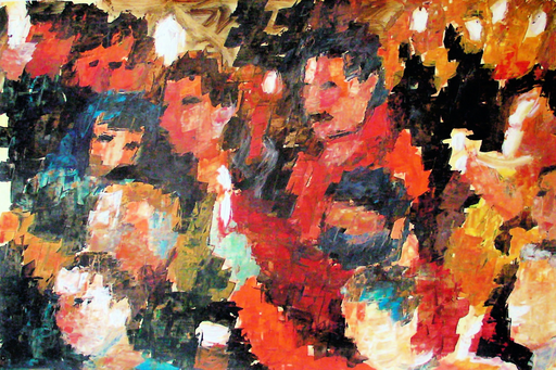 Mensen verzamelen zich eromheen. Zelfs dieren worden er op magische wijze door aangetrokken. Deze beelden blijven opduiken in mijn jarenlange werk met schilderen (als ademen en spreken voor mij) als een fascinerend symbool dat mensen niet kunnen weerstaan, dat ze samen zoeken en ervaren om zich te versterken.