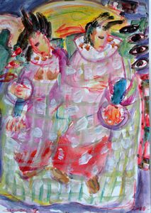 2025Reeds dagen zit ik met geknoei aan mijn ogen. Ik schilder, type en schrijf me de ziel uit het lijf.