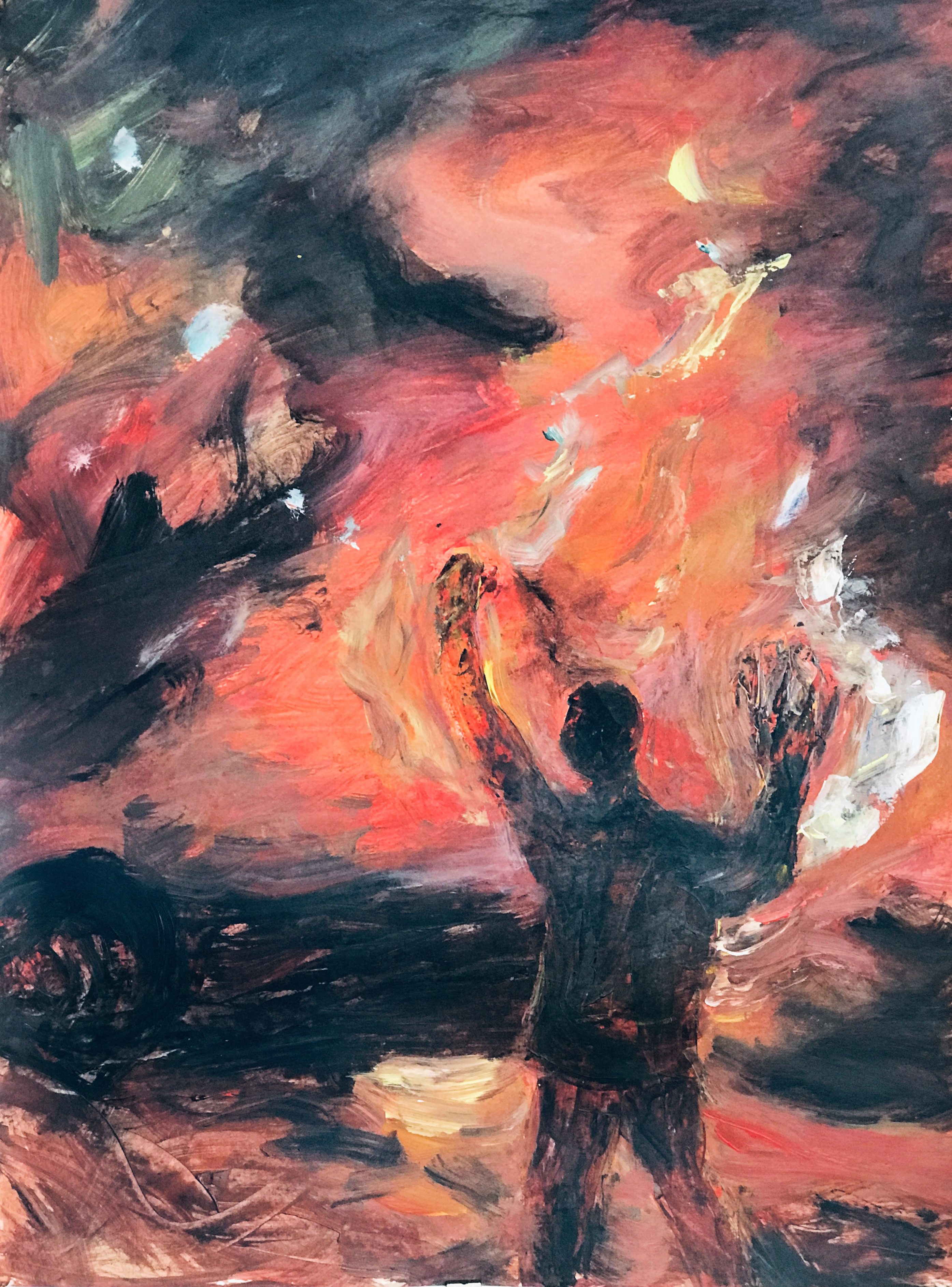 I handle all this very spontaneously, directly. I choose acrylic on paper (heavy), sometimes linen. But my pasty touch is more achievable on paper. It is direct, keeps what you put and does not run away or sink in. It is well protected behind glass. It works like a varnish and has depth.